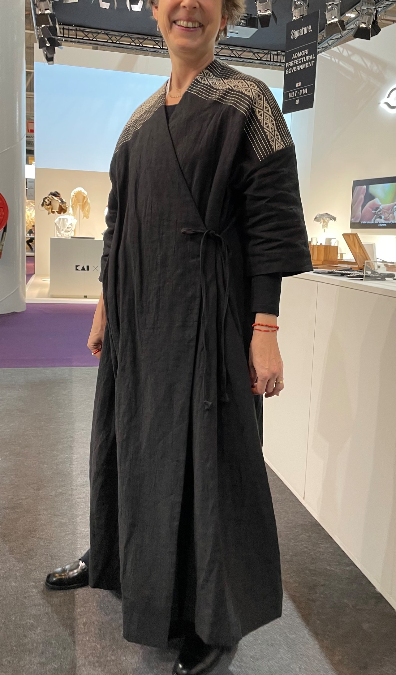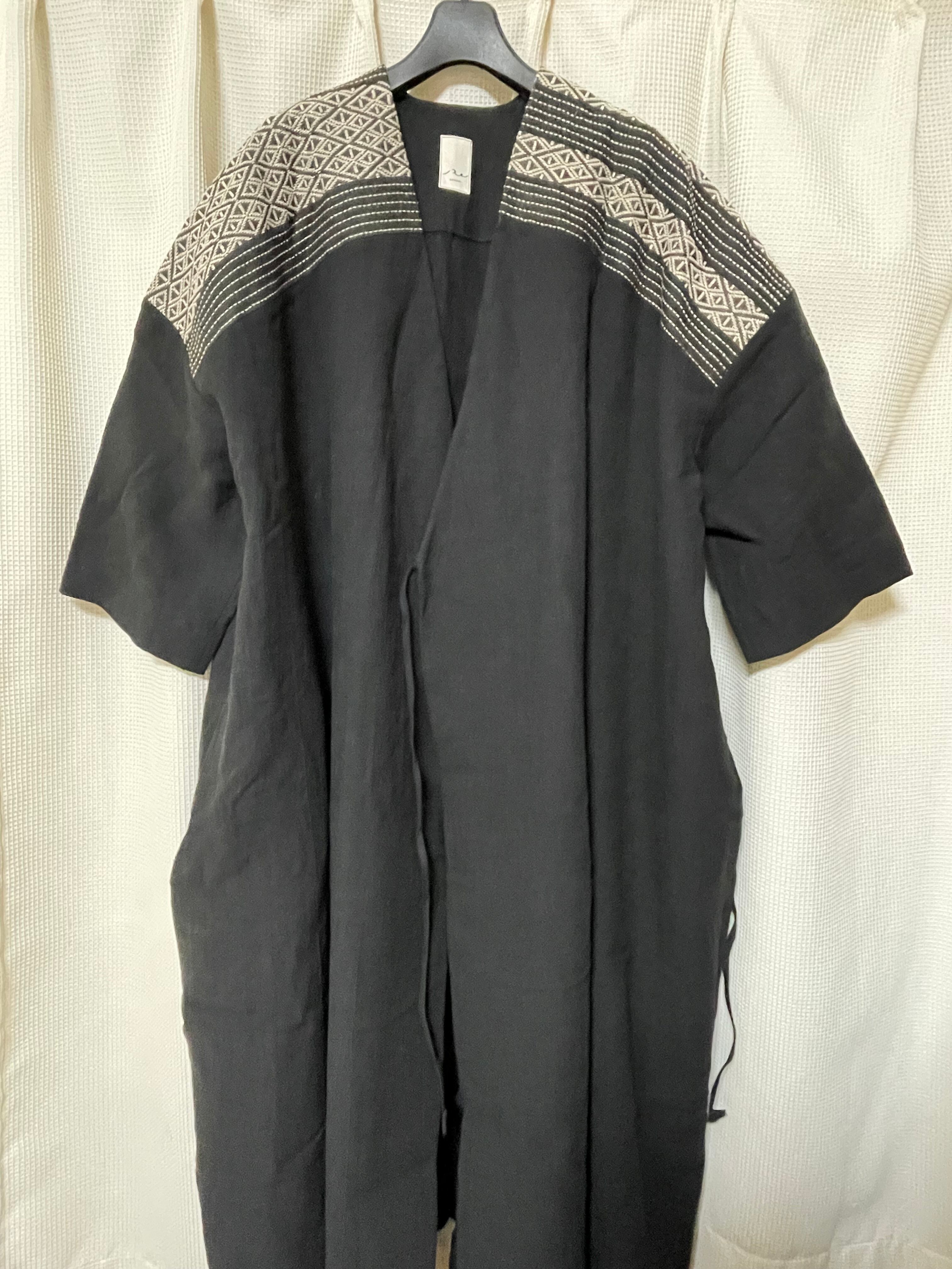 黒ベルギーリネンに京都金糸で伝統工芸の菱刺し -||- 古き良き日本の伝統工芸、京都金糸で繊細に縫い込まれた菱刺しの風合いが、このHishizashi haoriを特別な一着に変えます。シンプルながらも上品なデザインは、どんなコーディネートにもさりげないエレガンスをプラスしてくれることでしょう。一枚でさらりと羽織れる軽やかな着心地も、気軽に日常使いできる嬉しいポイントです。